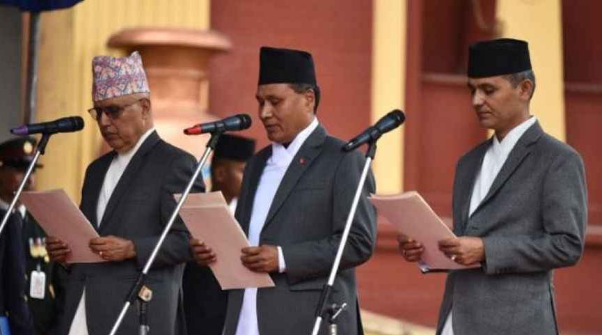 সোমবার (১৫ সেপ্টেম্বর) দুপুরে শীতল নিবাসে আয়োজিত বিশেষ অনুষ্ঠানে প্রেসিডেন্ট রামচন্দ্র পৌডেল তাদের শপথবাক্য পাঠ করান। এদিন নেপালের অন্তর্বর্তী সরকারের অর্থমন্ত্রী হিসেবে শপথ নেন রমেশ্বর খনাল; জ্বালানি মন্ত্রী হিসেবে শপথ নেন কুলমান ঘিসিং এবং স্বরাষ্ট্র ও আইনমন্ত্রী হিসেবে শপথ নেন ওম প্রকাশ আর্যাল। খবর দ্য কাঠমান্ডু পোস্টের।